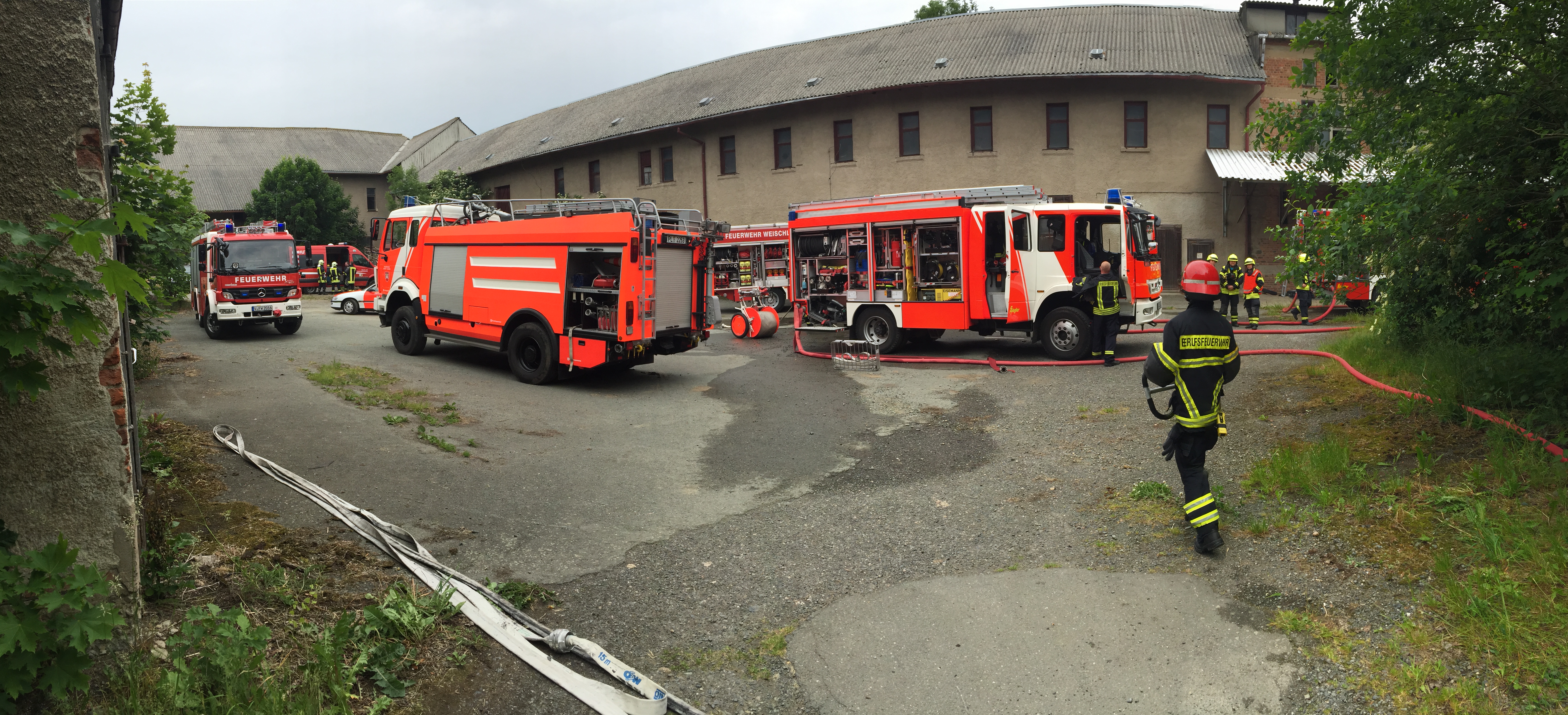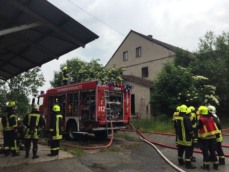 Um 14:07 Uhr wurde die Feuerwehr Oelsnitz, nach Weischlitz zu einem Brand in einem leerstehenden LPG Gebäude, alarmiert. Der Florian Weischlitz, die Drehleiter und ein Löschfahrzeug der Berufsfeuerwehr Plauen waren bereits vor Ort. Da zu diesem Zeitpunkt noch nicht abzusehen war, welches Ausmaß der Brand annimmt, wurde ein weiteres Löschfahrzeug, mit vorrangig Atemschutzgeräteträger aus Oelsnitz, dazu alarmiert. Als unser Hilfeleistungslöschfahrzeug (HLF) vor Ort war, stellten wir einen Sicherheitstrupp für den im Gebäude arbeitenden Angriffstrupp. Nach erneuter Einschätzung des Einsatzleiters vor Ort, wurden keine weiteren Kräfte unter Atemschutz benötigt, sodass wir kurz darauf die Einsatzstelle wieder verlassen konnten.