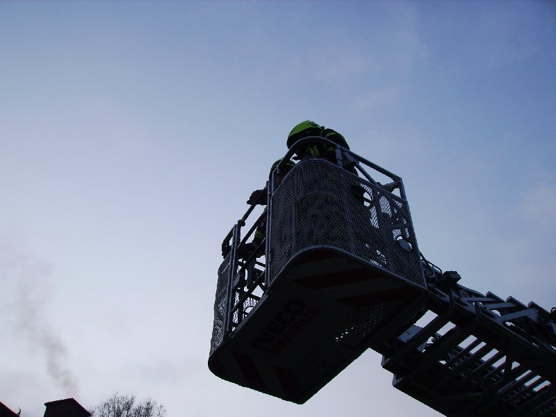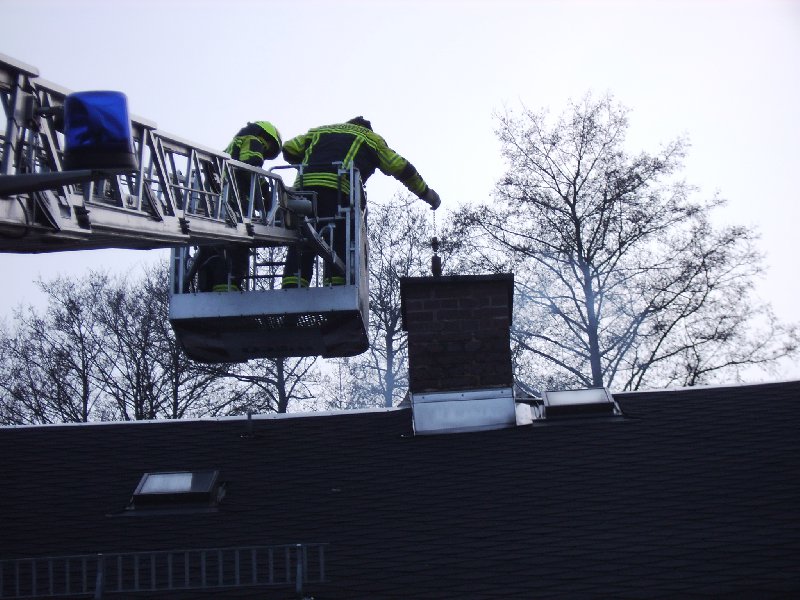 Schornstein wurde mittels Essenkehrgerät über Drehleiter gereinigt und anschließend die Esse mit Wärmebildkamera nachkontrolliert.