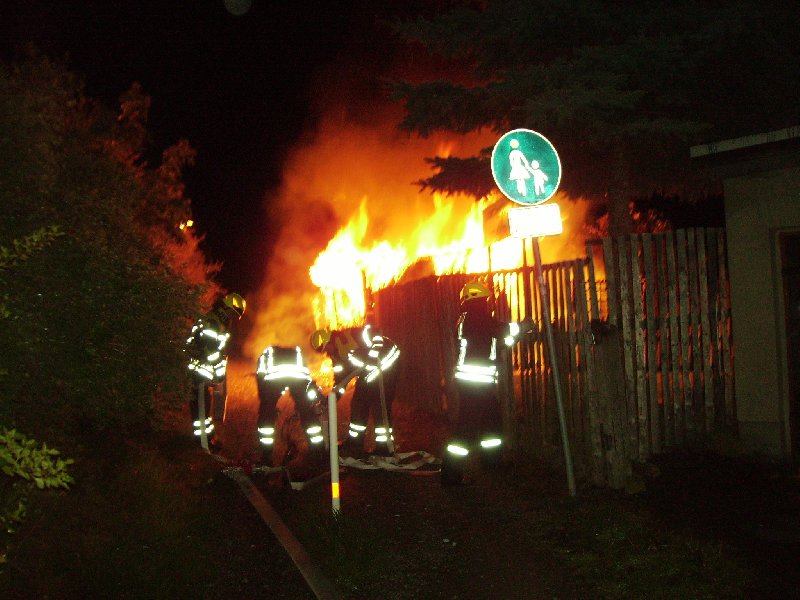 Bereits bei eintreffen der Feuerwehr, stand die Laube in Vollbrand.