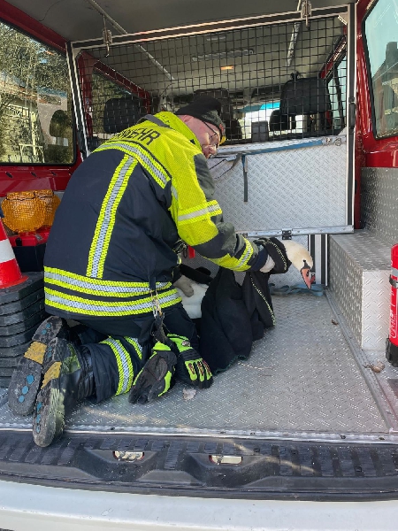 Ein offensichtlich verletzter Schwan war auf der Brückenstraße in Oelsnitz gestrandet und konnte diese aus eigener Kraft nicht mehr verlassen. Ein vorbeikommender PKW-Fahrer sicherte den bewegungsunfähigen Schwan bis zu unserem Eintreffen vor dem fließenden Verkehr und informierte die Rettungsleistelle Zwickau, die uns um Hilfe bat. Nachdem wir den Schwan aufgenommen hatten, transportierten wir ihn zur Wildtierpflegestation Heinrich in Bad Elster. Frau Heinrich nahm den Schwan in Obhut und veranlasst nun alle weiteren Maßnahmen. Wir wünschen dem Tier baldige Genesung und eine gute anschließende Auswilderung.
