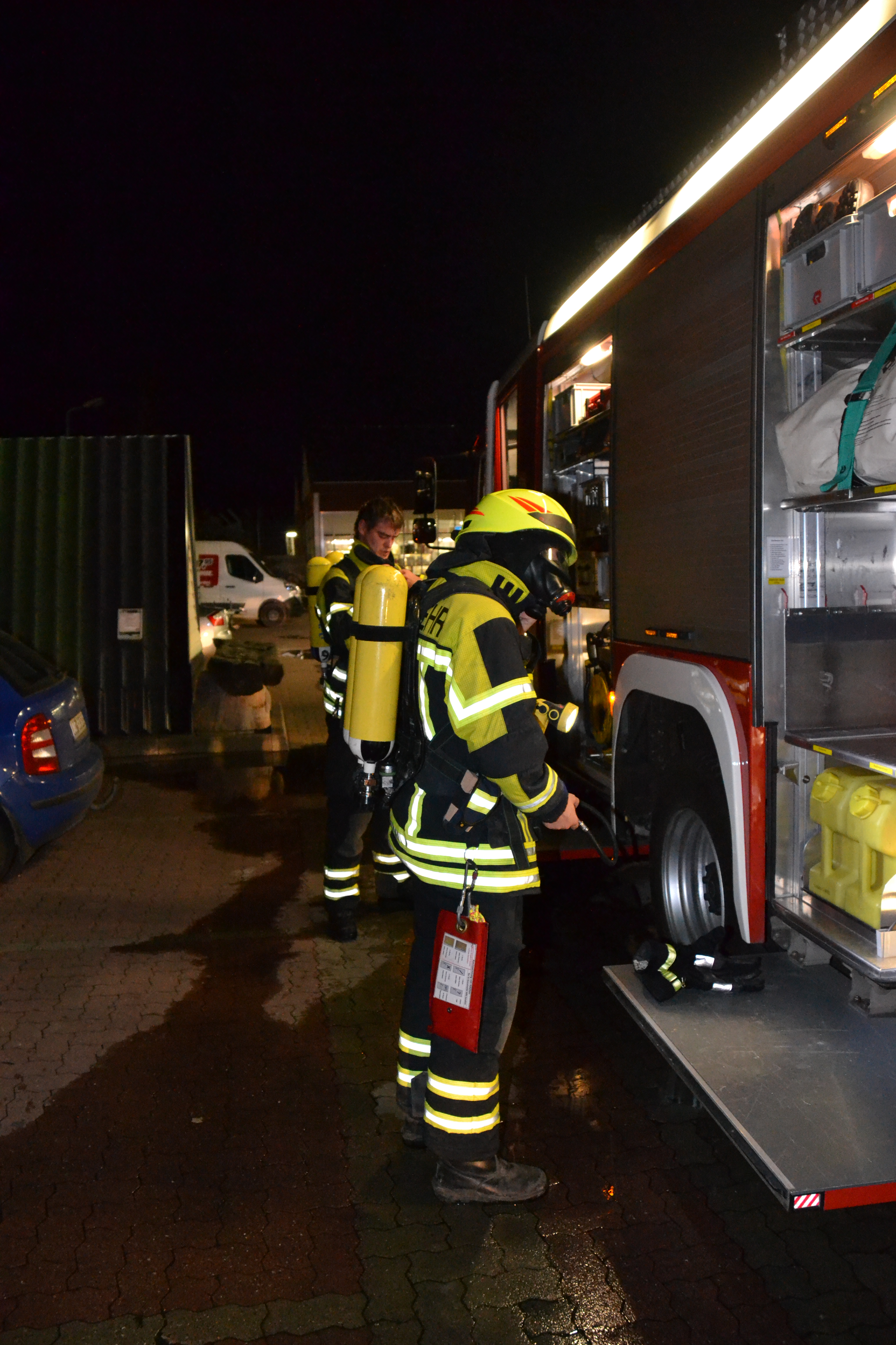 Ein Trupp unter Atemschutz mittels einem C - Rohr nahm die fiktive Brandbekämpfung auf.