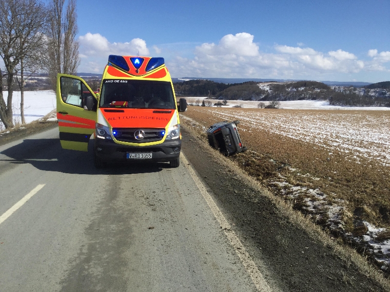 Die Einsatzstelle wurde gegen den fließenden Verkehr gesichert und der verunfallte PKW auf auslaufende Betriebsmittel kontrolliert.