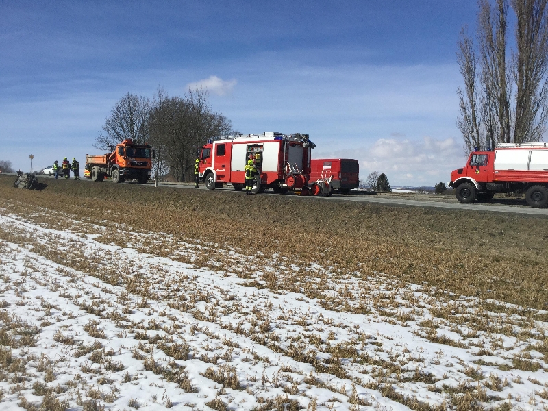 Mit dem Stichwort "TH mittel VKU" wurden wir zu einem Verkehrsunfall kurz vor dem Ortseingang Schönbrunn alarmiert.