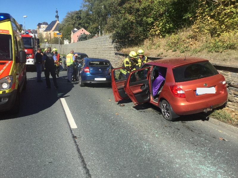 3 PKWs verunfallten durch gegenseitiges auffahren im Kreuzungsbereich. Nachdem die Insassen bereits durch den Rettungsdienst betreut wurden, übernahm die Feuerwehr das Abklemmen der Batterien.