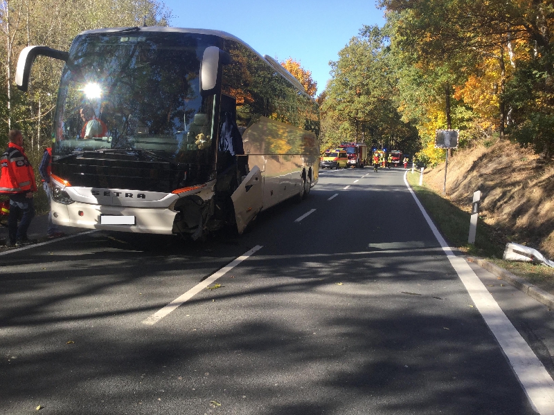Die Alarmierung zu einem Verkehrsunfall mit einem BUS und einem PKW, mehreren und eingeklemmten Personen löste eine größere Rettungskette aus. Die ersten Kräfte an der Einsatzstelle konnten in der ersten Lagemeldung die Situation jedoch schnell entkräften: es waren keine Personen eingeklemmt und nur eine Person verletzt. Ebenfalls wurde der PKW durch anwesende Mitarbeiter einer KFZ Werkstatt bereits stromlos gemacht. Entsprechend konnten die Kräfte der FF Oelsnitz zeitnah die Einsatzstelle an die zuständige Feuerwehr übergeben und abrücken.
