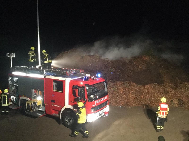 Durch vermutlich Selbstentzündung kam es auf dem Gelände der Müllbehandlungsanlage zu einem Brand eines größeren Grünguthaufens.
