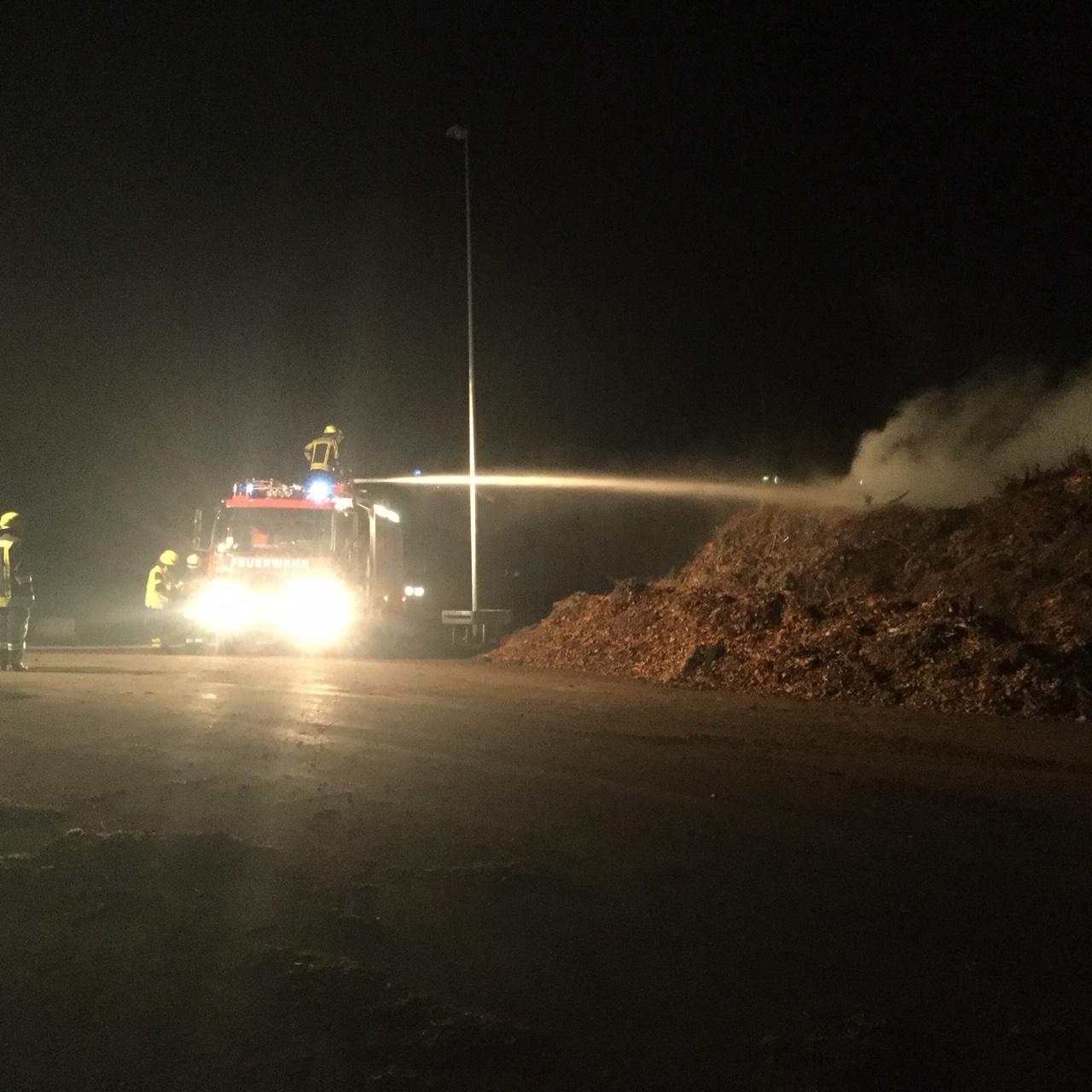 Der Haufen wurde durch die Feuerwehr gewässert und durch Mitarbeiter der Firma umgesetzt.