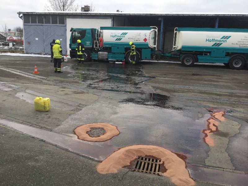 Ein Tanklaster verlor beim Umtanken Heizöl.