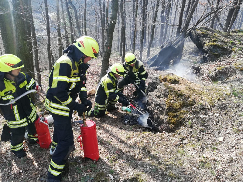 Hierbei handelte es sich um einen Schwelbrand von Laub und Kleingehölz.