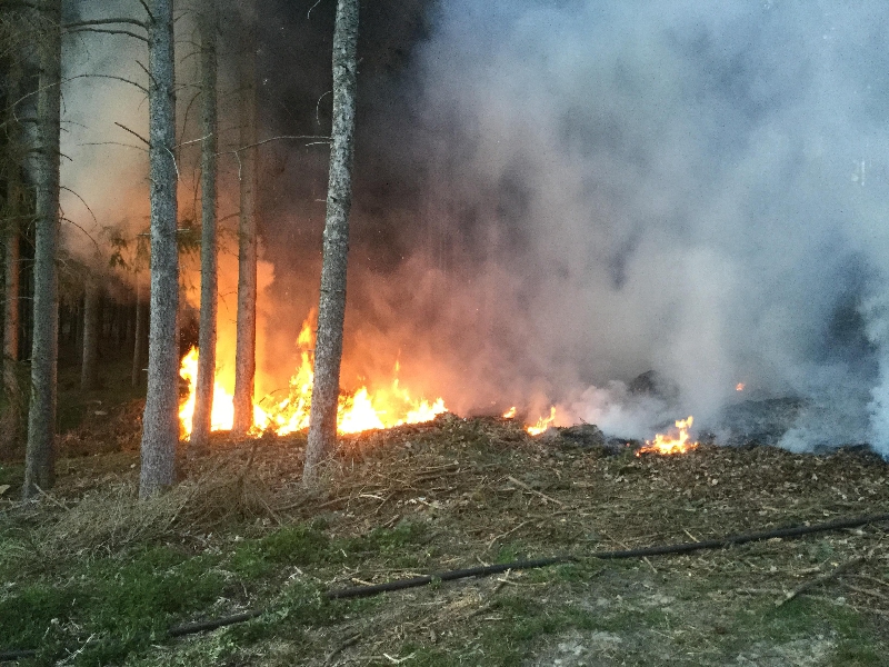 In einem Wald brannten ca. 60 m² Reisig und Laub.