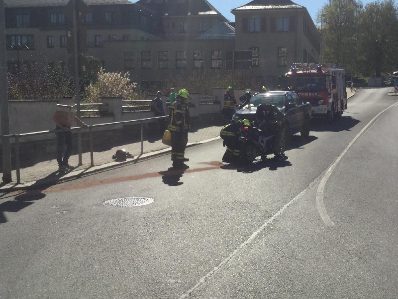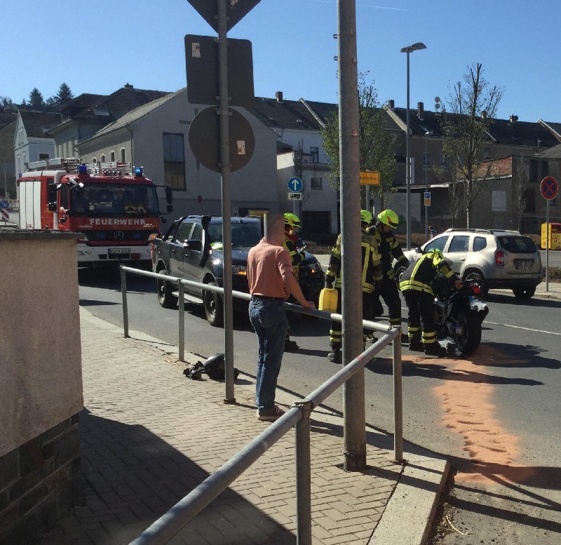 Dabei wurde das Motorrad so beschädigt, dass Öl austrat.