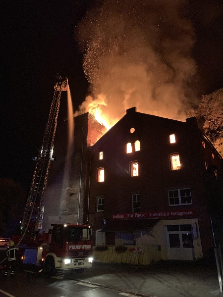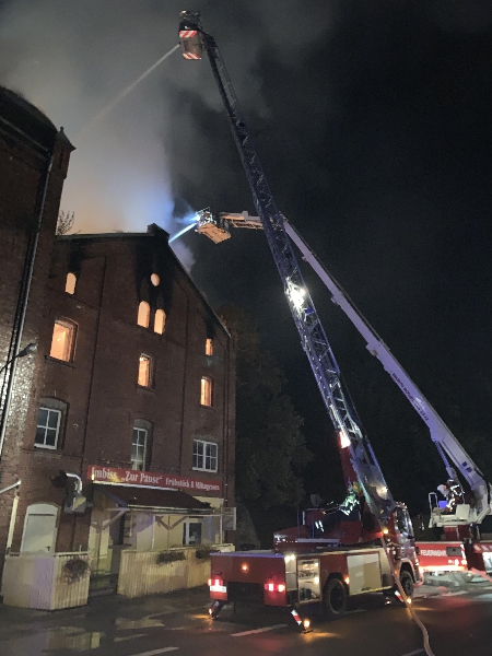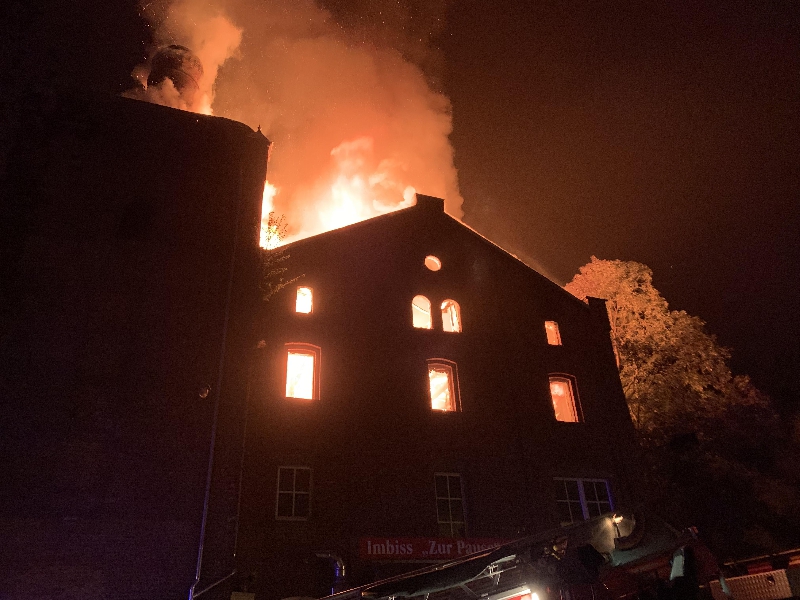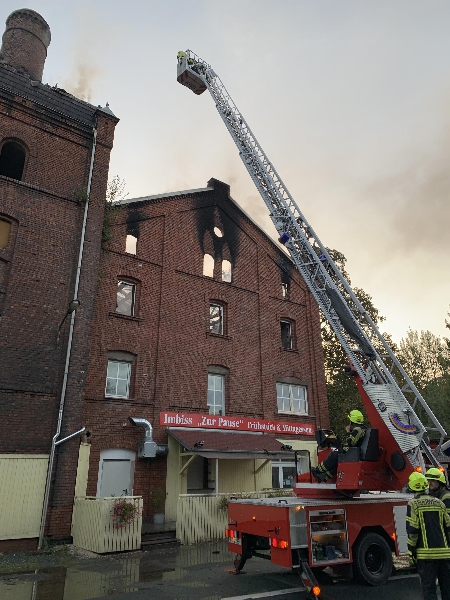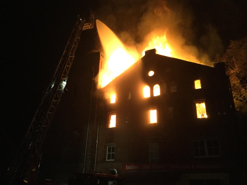 Der Dachstuhl der ehemaligen Brauerei Wetzstein stand beim Eintreffen der ersten Löschfahrzeuge bereits in Vollbrand. Aufgrund des fortgeschrittenen Brandes im Dachstuhl wurden zusätzlich Kräfte und Mittel der Feuerwehren Adorf und der Berufsfeuerwehr Plauen alarmiert. Die Löschwasserversorgung gestaltete sich schwierig, da ein nahe liegender Hydrant funktionslos war, sodass weitere Hydranten in nicht unmittelbarer Nähe angezapft werden mussten. Zur Sicherstellung einer ausreichenden Löschwasserversorgung über lange Wegstrecke wurden weitere Kräfte aus Magwitz, Planschwitz, Taltitz, Triebel und Tirpersdorf alarmiert. Die Brandbekämpfung von außen wurde über die Hubrettungsfahrzeuge der Feuerwehren Oelsnitz, Adorf und Plauen durchgeführt. Weitere Trupps verteidigten den vom Brand noch nicht betroffen Gebäudeteil erfolgreich. Nachdem ein Löscherfolg erzielt wurde, konnten die nachgeforderten Kräfte und Mittel der umliegenden Feuerwehren nach und nach aus dem Einsatz entlassen werden. Die Restlöscharbeiten und die Sicherung des Gebäudes zogen sich bis in die Nachmittagsstunden.