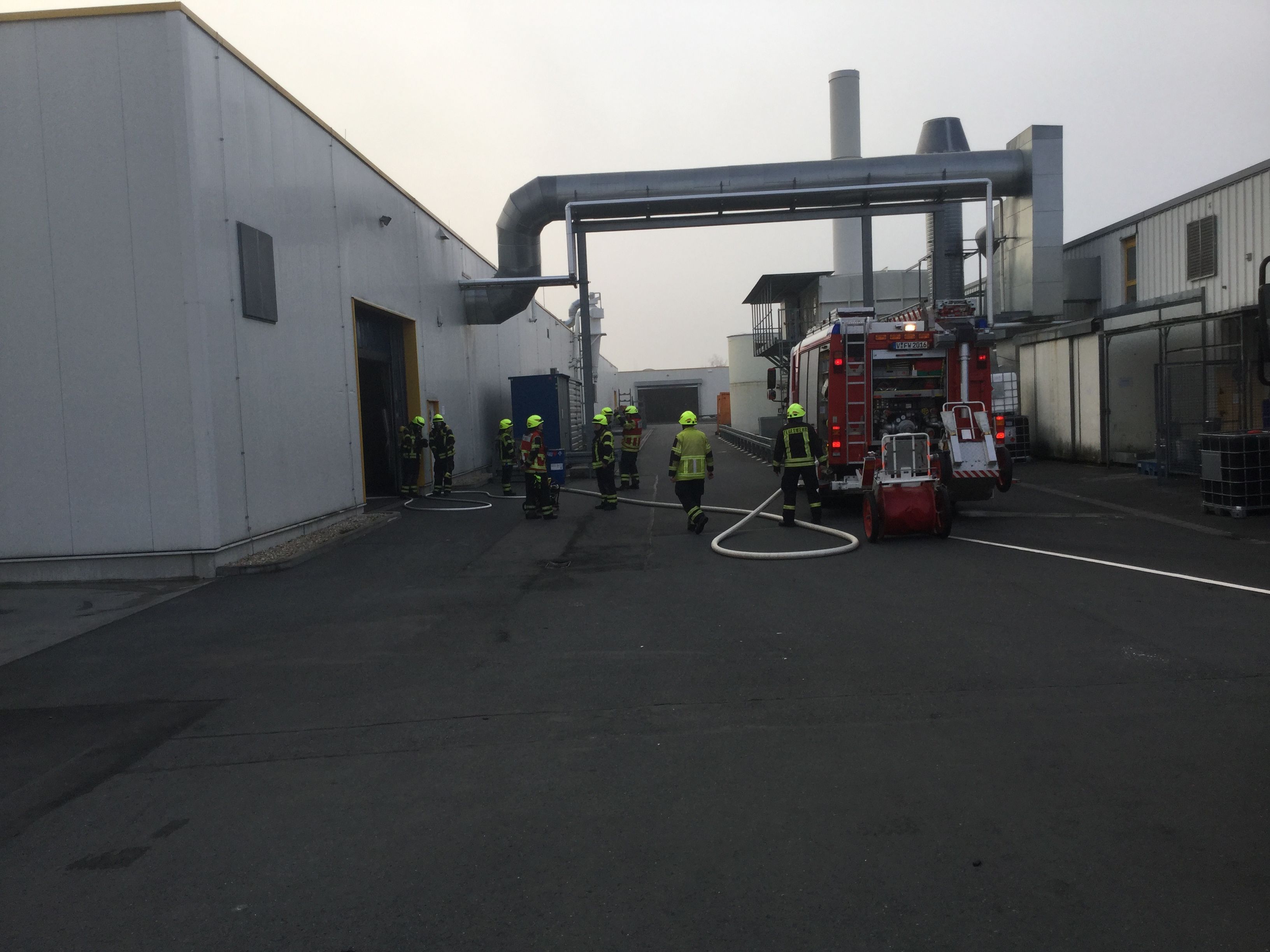 An einer Maschine in einem Industriebetrieb entstand aus bisher ungeklärter Ursache ein Brand. Arbeitern gelang es, den Brand zu löschen, bevor sie die Halle verließen. Ein Trupp unter Atemschutz ging mit Wärmebildkamera vor, um die Lage weiter zu erkunden und Restlöscharbeiten durchzuführen. Mit Überdrucklüftern wurde die Halle entraucht bzw. belüftet und anschließend die Einsatzstelle an die Verantwortlichen des Betriebes übergeben.