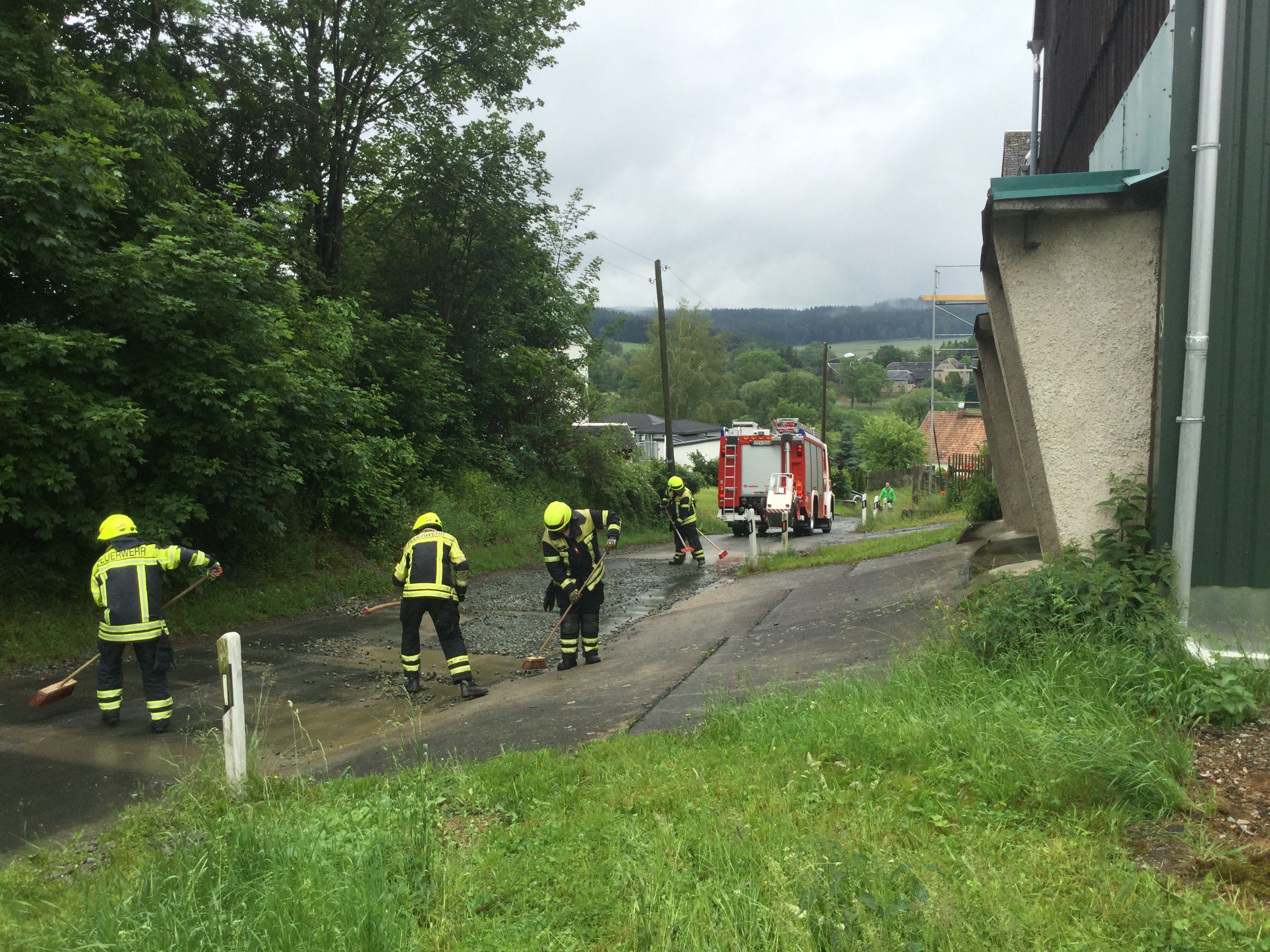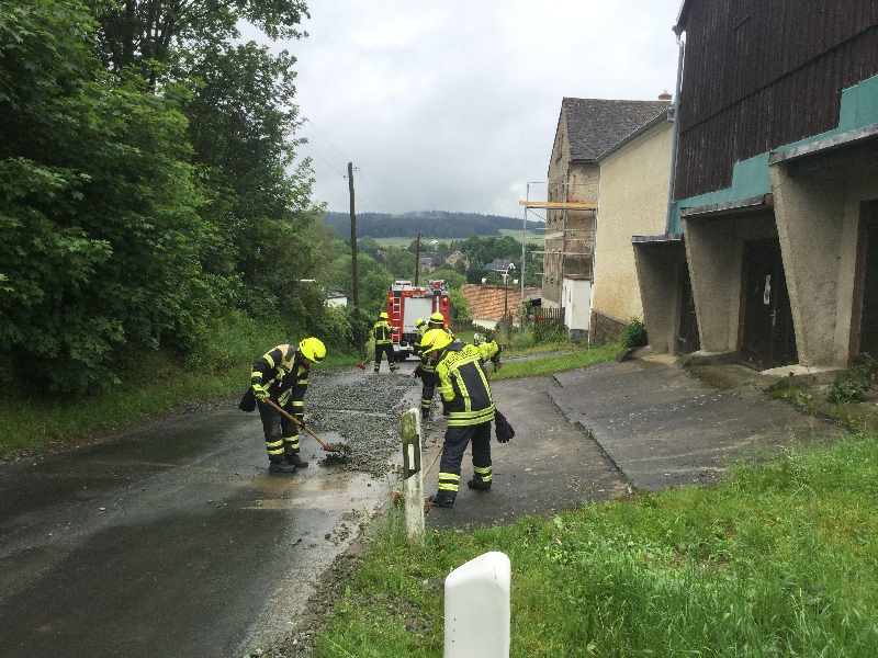 Nach dem Starkregen am frühen Morgen wurde der Untere Görnitzer Weg mit Schotter verschmutzt. Beamte der Polizei bemerkten auf ihrem Streifendienst den Sachverhalt und alarmierten die Feuerwehr. Mit Besen und Schaufeln beseitigten wir die Gefahr, so dass die Straße wieder befahrbar ist.
