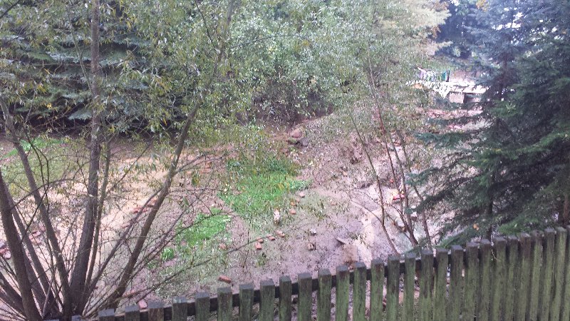 Keller ausgepumpt mit div. Pumpen (TS, Tauchpumpe, etc). Später Unterstützung durch Traktor mit Güllefass (Fa. Agrofarm 2000 Eichigt)