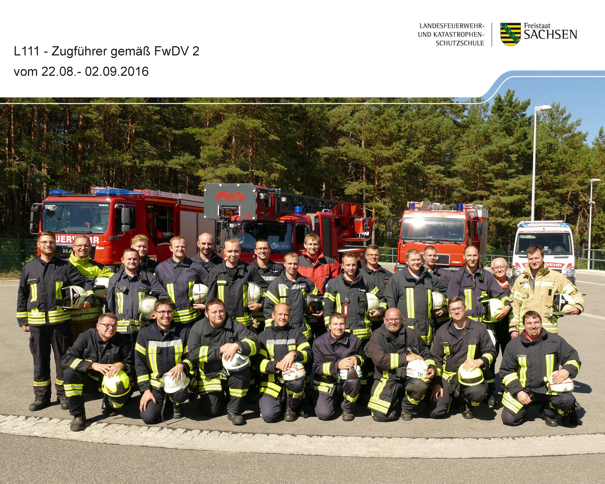 Hierzu gehören auch entsprechende Lehrgänge an der Landesfeuerwehr- und Katastrophenschutzschule Sachsen in Nardt. Im August bzw. September haben unsere Kameraden Patrick Heinritz den Lehrgang „Zugführer gemäß FwDV 2“ und Matthias Heinritz den Lehrgang „Ausbilder Fahrsicherheitstraining“ erfolgreich abgelegt.